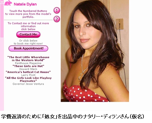昨年9月、「学費ローンの返済」を理由に自らの「処女」をオークションに出品して話題となったナタリー・ディランさん(仮名)という22歳の女子大生がいたらしいです。